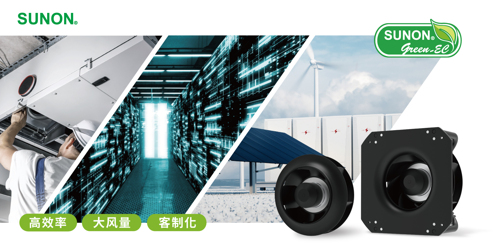 智控节能,静享未来 面对全球节能减排风潮与日益严格的环保法规,对通风和空调设备的能效要求不断提高,使得新一代通风解决方案,需采用先进变频技术与空气动力学设计,来大幅降低能耗,助力企业实现绿色转型。 建准全新Green EC 离心风机系列,透过优化风机结构与降噪技术来提升风扇整体性能,更结合智能控制,实现商用高效率暖通空调系统远程监控、自动调节风量,精准通风的需求。 Green EC 离心风机有2种版本选择 为了符合暖风空调统各种安装需求,建准Green EC 离心风机提供有支撑架与无支撑架离心风机2种版本选择。 ✔️智能速控 内建0-10 VDC、PWM控制;并可支持 RS485 Modbus精确控制气流 ️✔️抵御恶劣天气防护设计 Green EC 系列产品具有IP44 ~IP55 的防尘防水以上设计,金属材质表面都有额外的涂层达到防腐保护;针对特定应用可依需求客制化防爆设计。 ️✔️️可依系统客制化调整 可依你的暖通空调系统调整风扇转速、尺寸、电压、连接器、防护等级等需求。 节能、控制、高效的对流与散热方案 大型的Green 离心扇系列,具有大风量、静音、与智慧控制等优势,针对HVACR、工业、能源、数据中心等大型设备通风散热提供100V – 480V的电压设计、智能速控之特性,同时符合欧盟ErP 2026要求,特别适合于对节能永续有严格要求的高效率暖通空调系统。 产业应用 商用冷藏、暖风空调、电动车充电系统、储能系统、工业机械、数据中心精密空调。 ※更多大型尺寸高风量离心扇 EC 400、EC 500、EC 560 、EC 630系列产品 将于 2025 年 7 月开始提供样品申请。